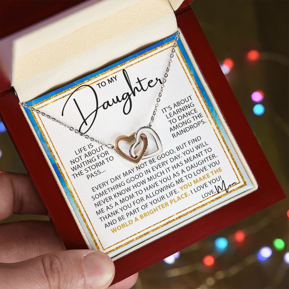 Dance In The Rain - To My Daughter interlocking hear necklace