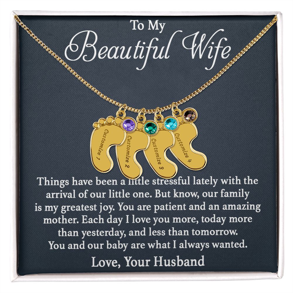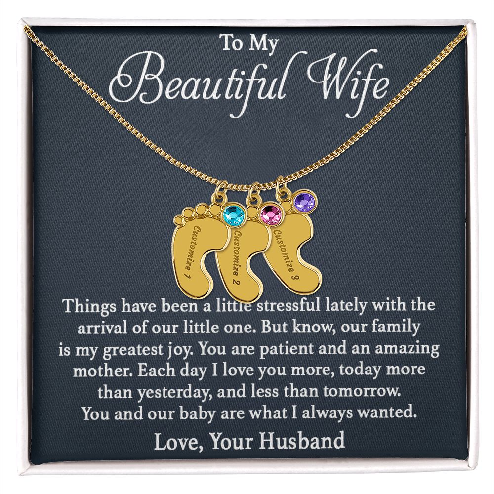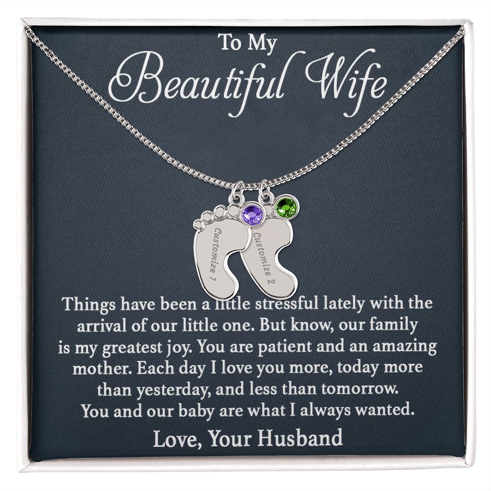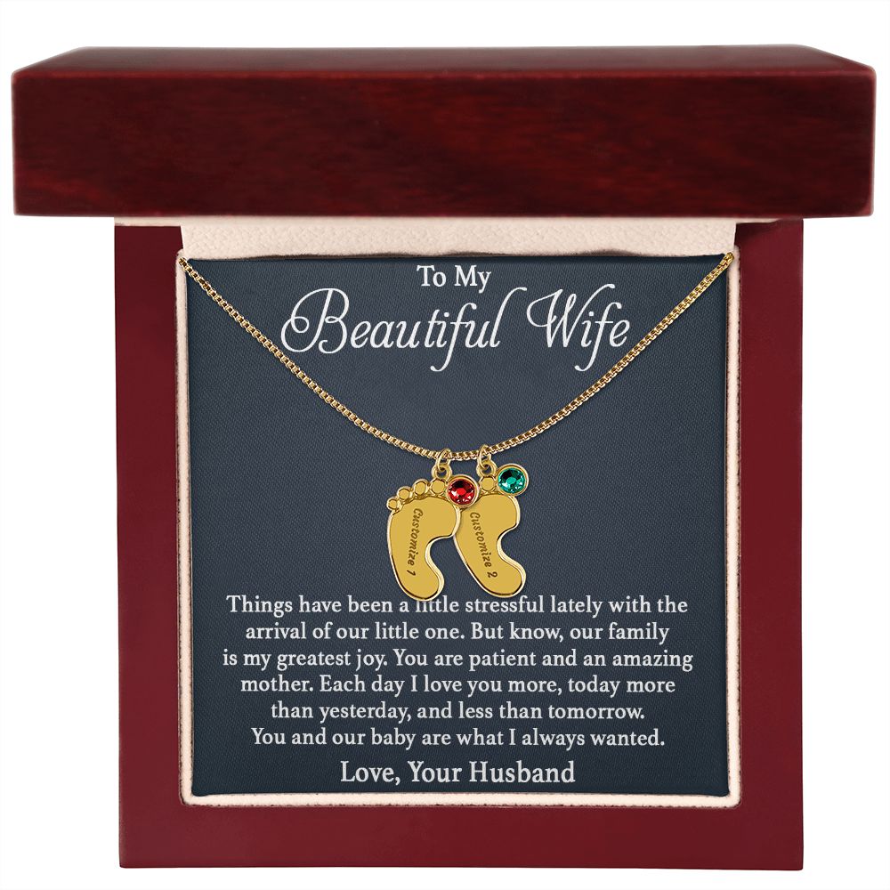 Celebrate the arrival of a newborn or cherish a precious memory with our Custom Baby Feet Necklace with Birthstone. Personalize your gift by engraving a name of your choice onto the pendant and choosing a crystal that correlates with the baby's birth month. And by picking multiple pendants, a custom present like this is perfect for moms and grandmothers with big families. This is a one-of-a-kind keepsake that will be treasured for a lifetime!
