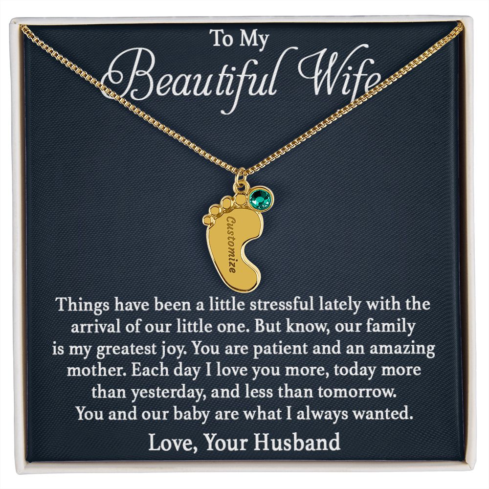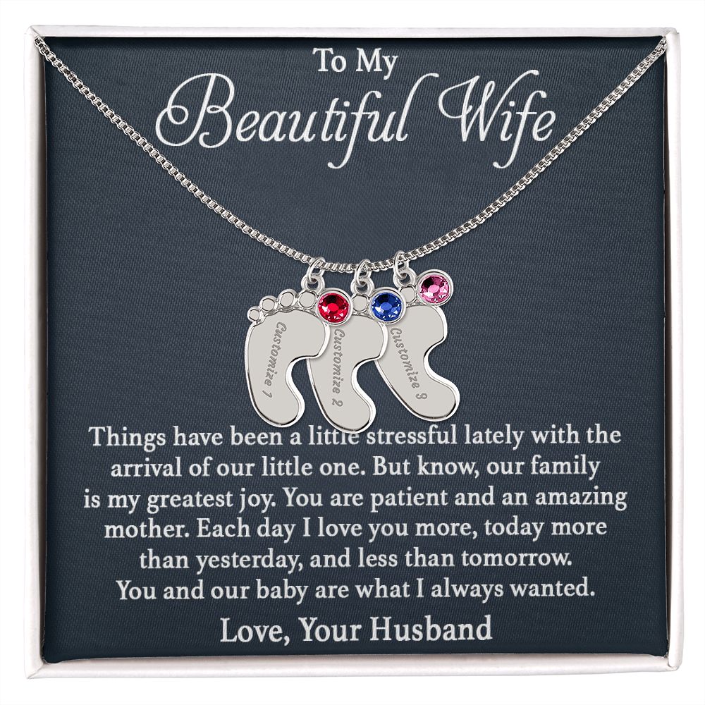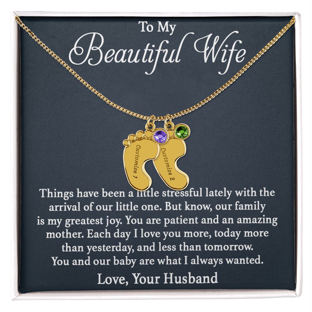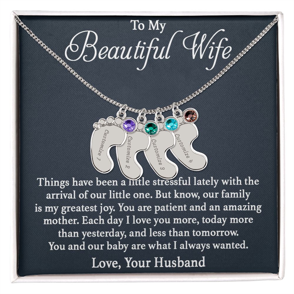 Celebrate the arrival of a newborn or cherish a precious memory with our Custom Baby Feet Necklace with Birthstone. Personalize your gift by engraving a name of your choice onto the pendant and choosing a crystal that correlates with the baby's birth month. And by picking multiple pendants, a custom present like this is perfect for moms and grandmothers with big families. This is a one-of-a-kind keepsake that will be treasured for a lifetime!