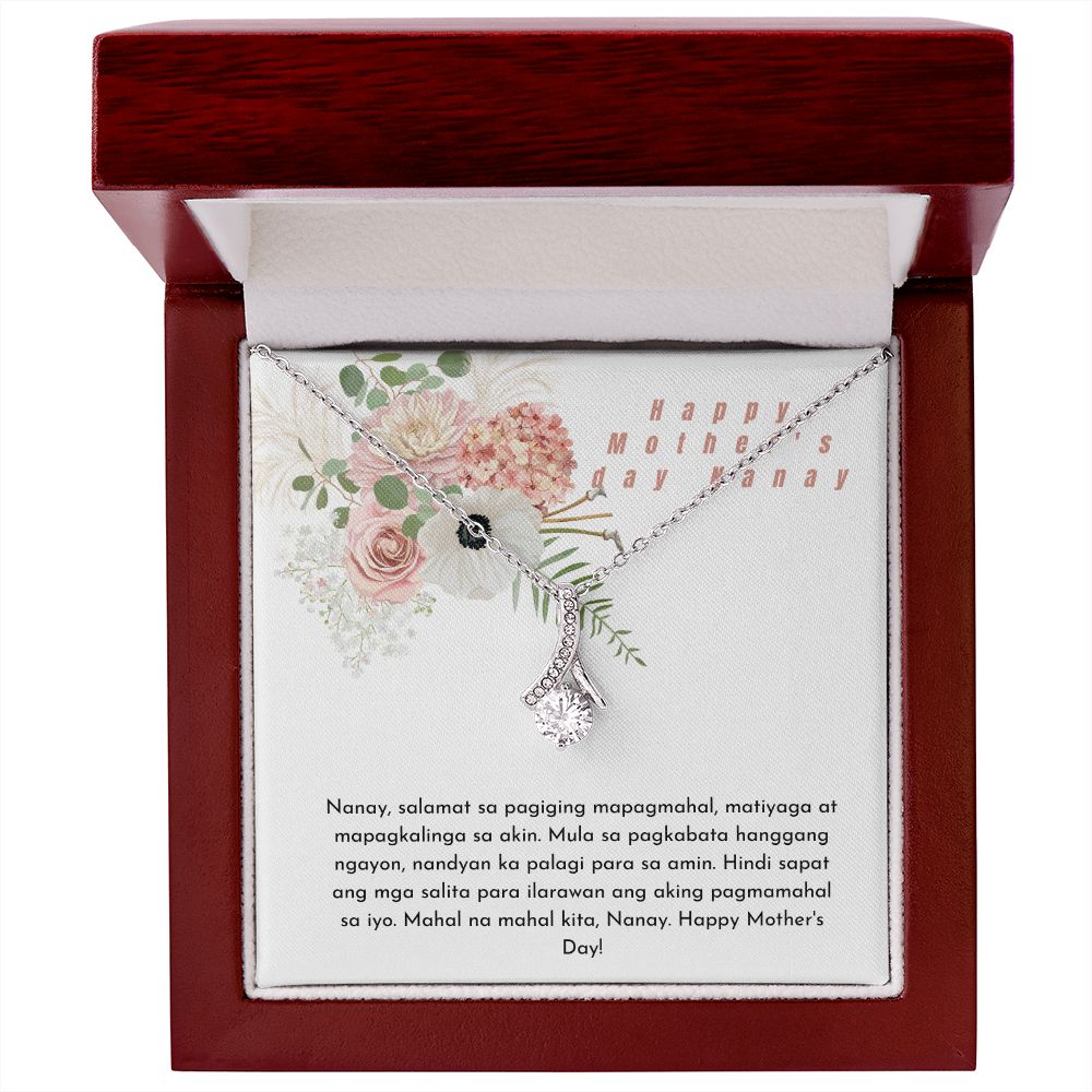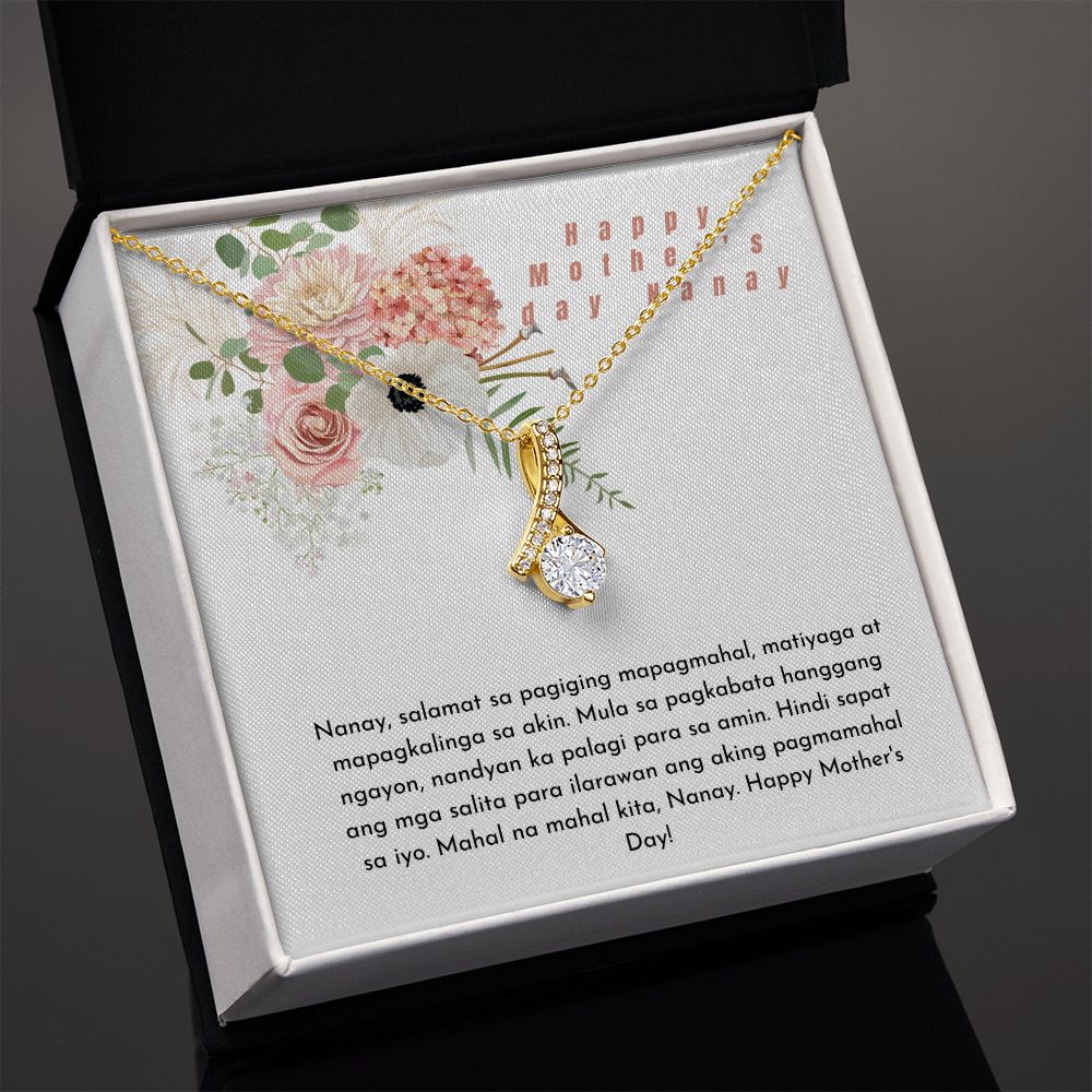 Imagine her reaction when she opens this stunning gift! The Alluring Beauty necklace features a petite ribbon shaped pendant that is sure to dazzle your special someone. Whether it's a birthday or anniversary, make sure to get her a gift she will love for years to come.