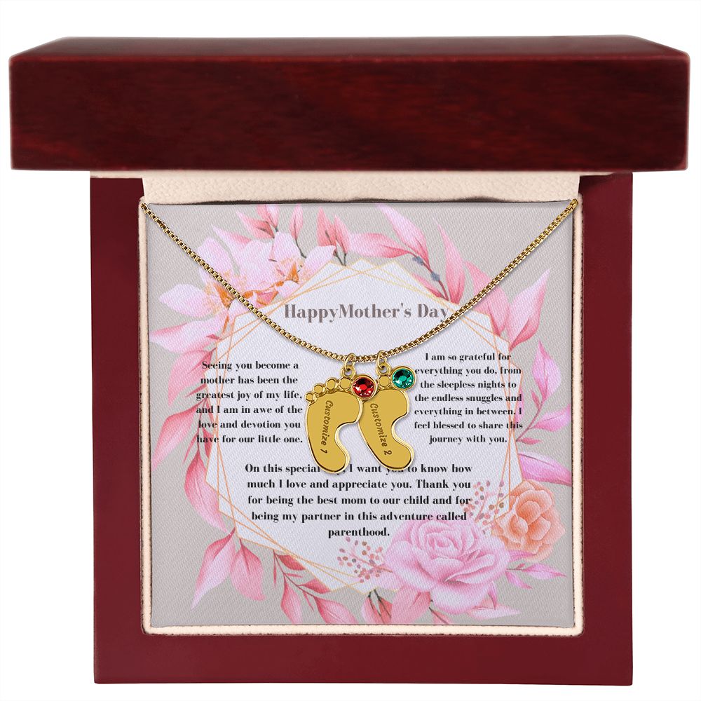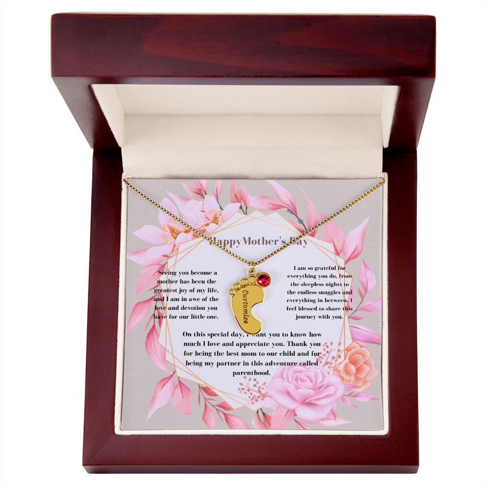 Celebrate the arrival of a newborn or cherish a precious memory with our Custom Baby Feet Necklace with Birthstone. Personalize your gift by engraving a name of your choice onto the pendant and choosing a crystal that correlates with the baby's birth month. And by picking multiple pendants, a custom present like this is perfect for moms and grandmothers with big families. This is a one-of-a-kind keepsake that will be treasured for a lifetime!