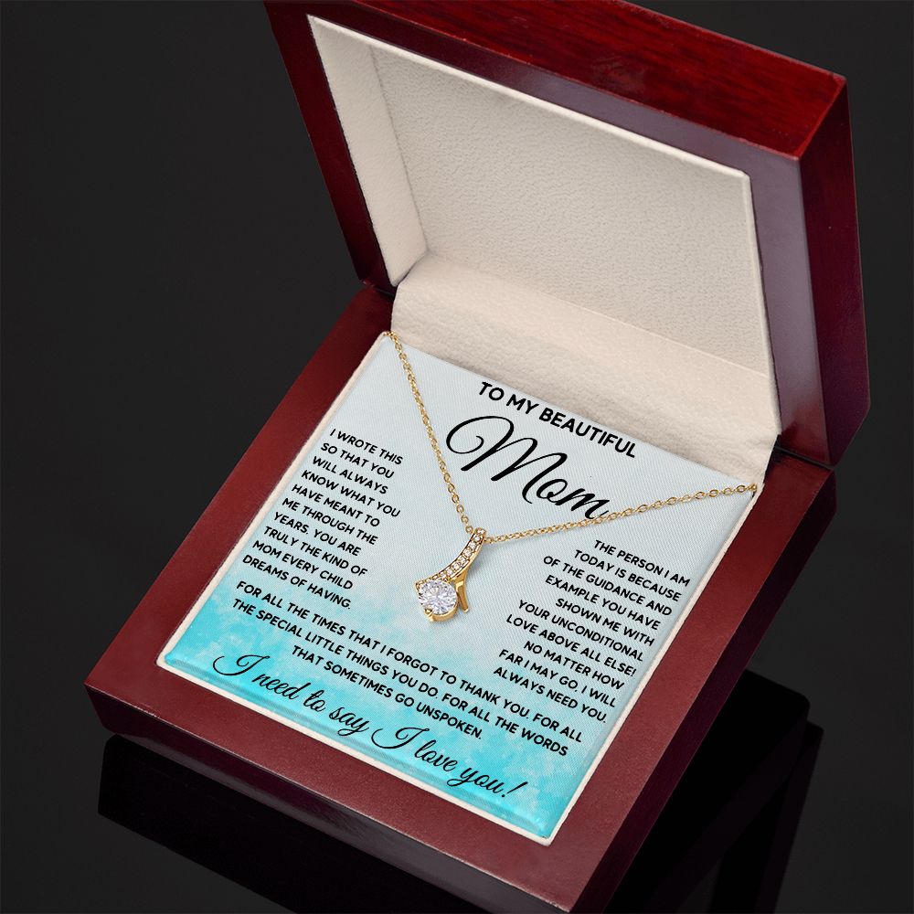 Imagine her reaction when she opens this stunning gift! The Alluring Beauty necklace features a petite ribbon shaped pendant that is sure to dazzle your special someone. Whether it's a birthday or anniversary, make sure to get her a gift she will love for years to come.